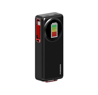 Powerology 15000mAh Mini Power Bank with Multiple Charging Ports, Universal Compatibility, Advanced Safety Features, Smart TFT Display, Built-in USB-C Cable - Black