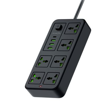 لوحة طاقة Porodo Blue متعددة المنافذ مع ×2 USB-A و×3 USB-C، 3 منافذ طاقة AC، قدرة طاقة مقدرة 3000 واط، طول الكابل 2 متر، توافق عالمي - أسود69.00