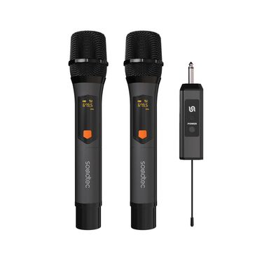 ميكروفون لاسلكي قابل لإعادة الشحن من بورودو ساوندتيك ديو الألومنيوم مع شاشة رقمية، صوت عالي الجودة، قناتان، نمط قطبي أحادي الاتجاه، طرق ضبط DSP، مدى استقبال 25 مترًا - أسود183.00