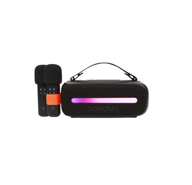 مكبر صوت بورودو ساوند تيك 24 وات بتقنية البلوتوث مع ميكروفون لاسلكي مزدوج وحزام حمل وصوت جهير قوي ووظيفة FM وإضاءة RGB - أسود 192.00
