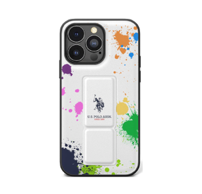 يو اس بولو أسن. حامل هاتف iPhone 15 Pro مصنوع من جلد البولي يوريثان مع حافظة باللون الأبيض - أبيض