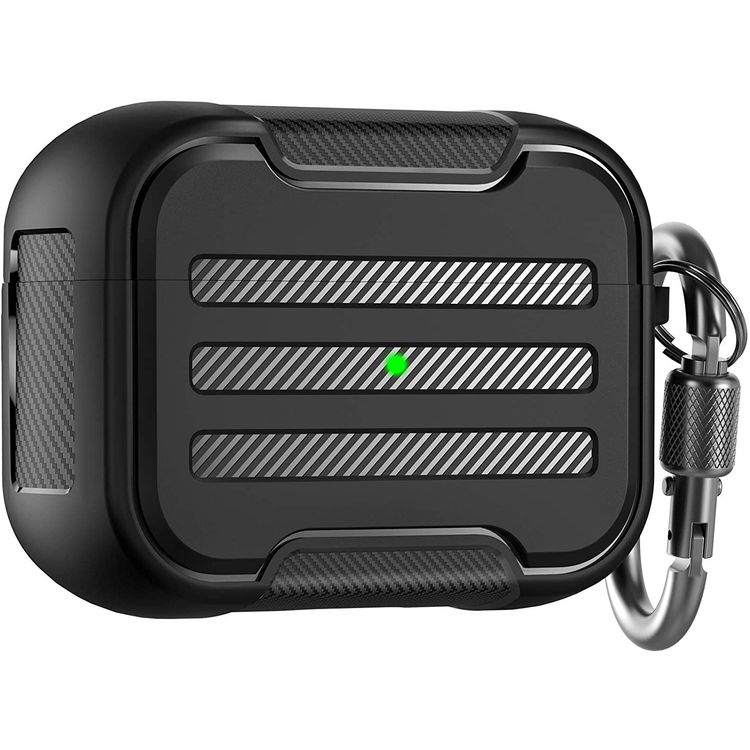 جراب قوي البنية من اهاستايل ايربودز برو غطاء واقٍ صلب من البولي يوريثان الحراري مقاوم للصدمات متوافق مع علبة شحن ايربودز برو - اسود