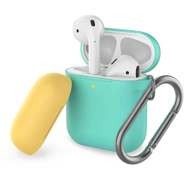اهاستايل جراب من السيليكون بلونين من سلسلة المفاتيح لأجهزة ايربودز من الجيل 1/2 ، ومقاوم للخدش ومقاوم للسقوط ومقاوم للغبار والامتصاص مع جراب تعليق لسماعات ابل ايربودز 1/2 ، وعلبة شحن لاسلكية ، بلون أخضر / أصفر