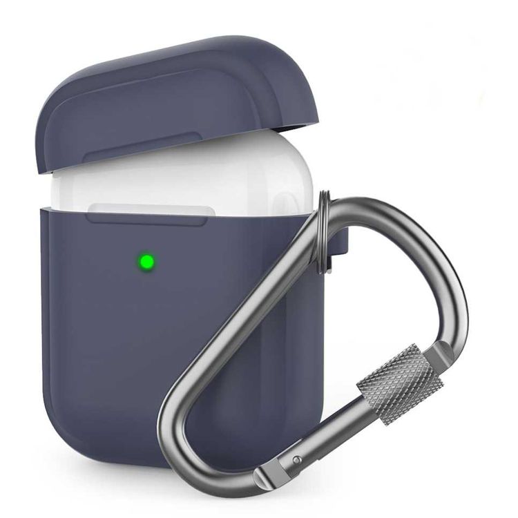 جراب سلسلة مفاتيح اهاستايل الفاخر مع حلقة مضادة للفقد متوافقة مع ايربودز 1/2 ، مقاومة للخدش ، امتصاص الصدمات ، حماية من السقوط ، واقية ضد الغبار - ازرق غامق