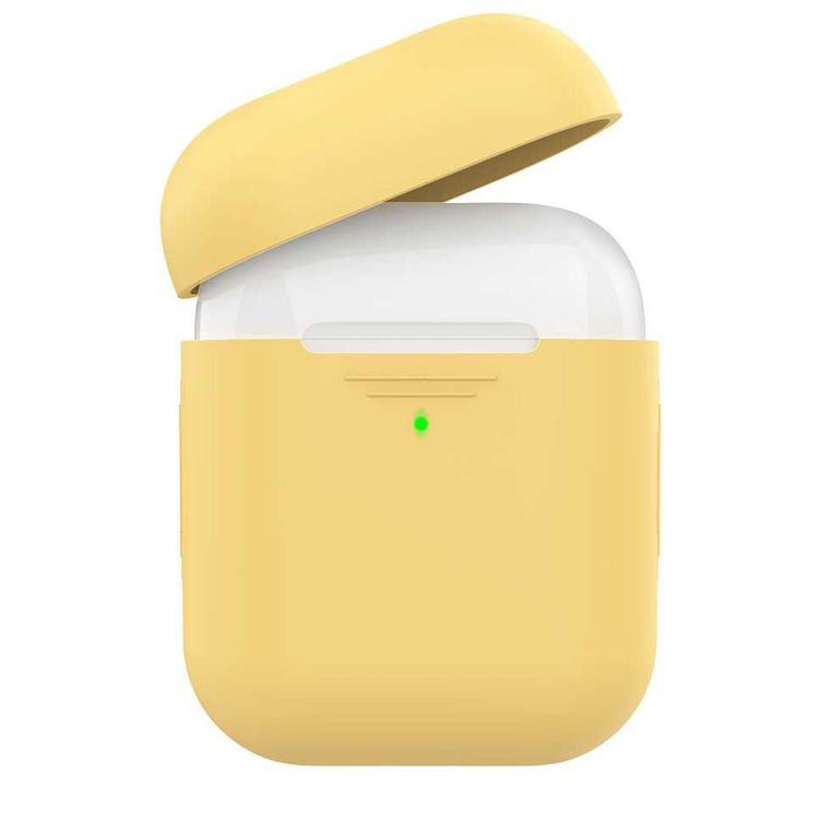 جراب سيليكون ممتاز من اهاستايل لأجهزة ايربودز من الجيل 1/2 ، مقاوم للخدش ، مقاوم للسقوط ، مقاوم للغبار وغطاء ماص ، حافظة شحن لاسلكية ، أصفر