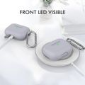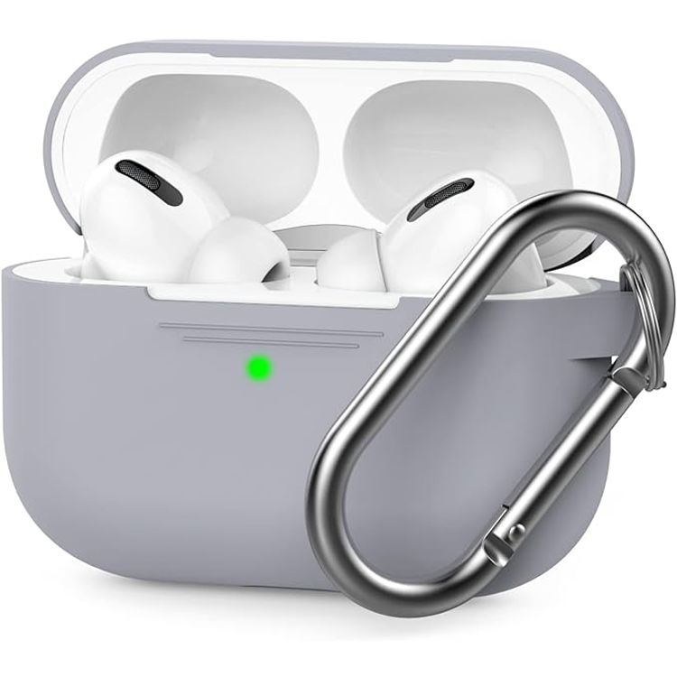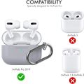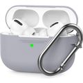 حافظة سيليكون فاخرة بتصميم ثلاثي الأبعاد من Ahastyle مع حلقة تثبيت متوافقة مع AirPods Pro - تصميم كلاسيكي مريح - غطاء مقاوم للغبار والصدمات يدعم الشحن اللاسلكي - رمادي أبيض