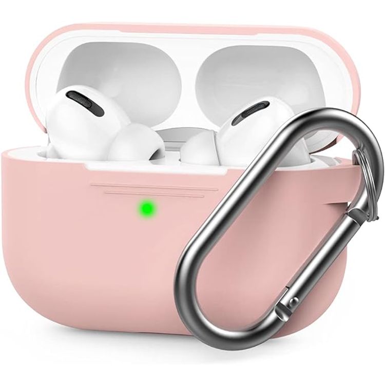 جراب سيليكون فاخر بتصميم ثلاثي الأبعاد من Ahastyle مع حلقة تثبيت متوافق مع AirPods Pro - تصميم كلاسيكي مريح - غطاء مقاوم للغبار والصدمات يدعم الشحن اللاسلكي - وردي ساكورا