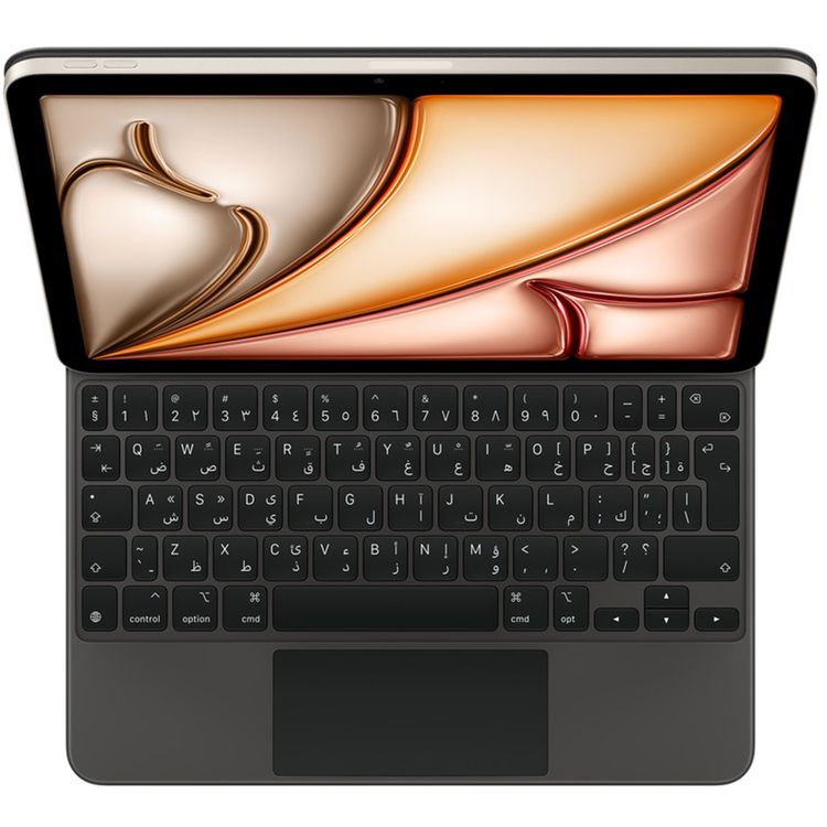 لوحة مفاتيح آبل ماجيك لجهاز آيباد إير 11" M2 مع لغة عربية، حماية أمامية وخلفية، مفاتيح مضيئة وآلية مقص، منفذ USB-C، تصميم محمول ورفيع، إيماءات اللمس المتعدد - لون أسود.