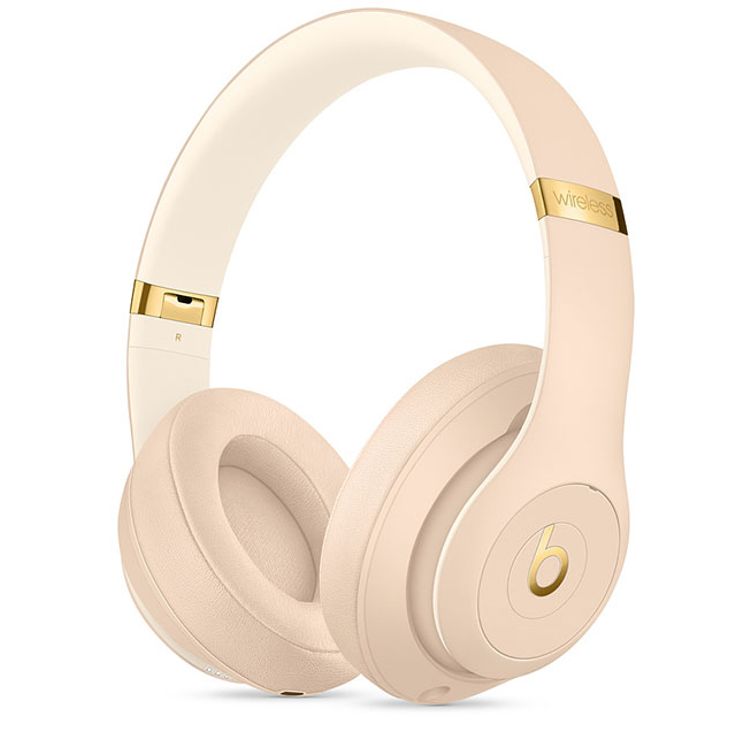 سماعات Beats Studio 3 اللاسلكية مع محركات مصممة خصيصًا، أزرار تحكم على الأذن، عصابة رأس قابلة للتعديل لراحة طويلة، مجموعة Sky-line، شريحة Apple W1، اقتران متعدد الأجهزة، ميزة ANC النقية، بطارية تدوم حتى 40 ساعة - بيج