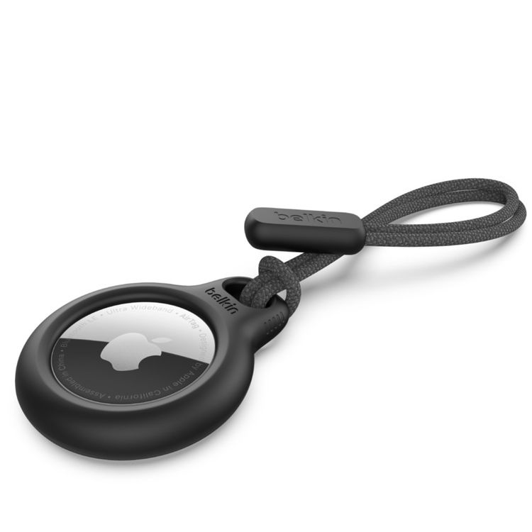 Belkin Secure Holder with Strap Compatible for Apple Airtag, Anti-Scratch Skin Cover, Anti-Lost Holder Suitable for AirTag Bluetooth Tracker - Black