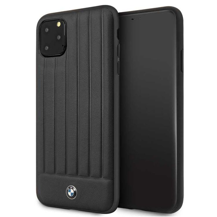 جراب BMW صلب بخطوط جلدية متوافقة مع iPhone 11 Pro Max ، حماية كاملة ، قواطع دقيقة يسهل الوصول إليها لجميع المنافذ ، مقاومة للخدش - أسود
