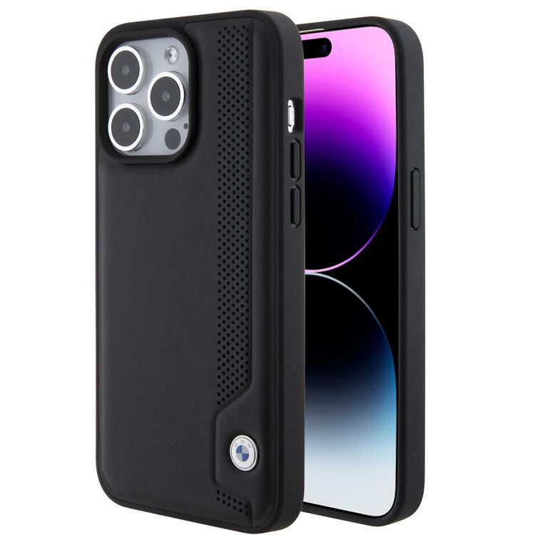 حافظة جلدية BMW مع نمط نقاط زرقاء لهاتف iPhone 15 Pro