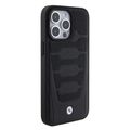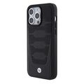 حافظة جلدية BMW مع نمط مقاعد لافتة لهاتف iPhone 15 Pro - أسود