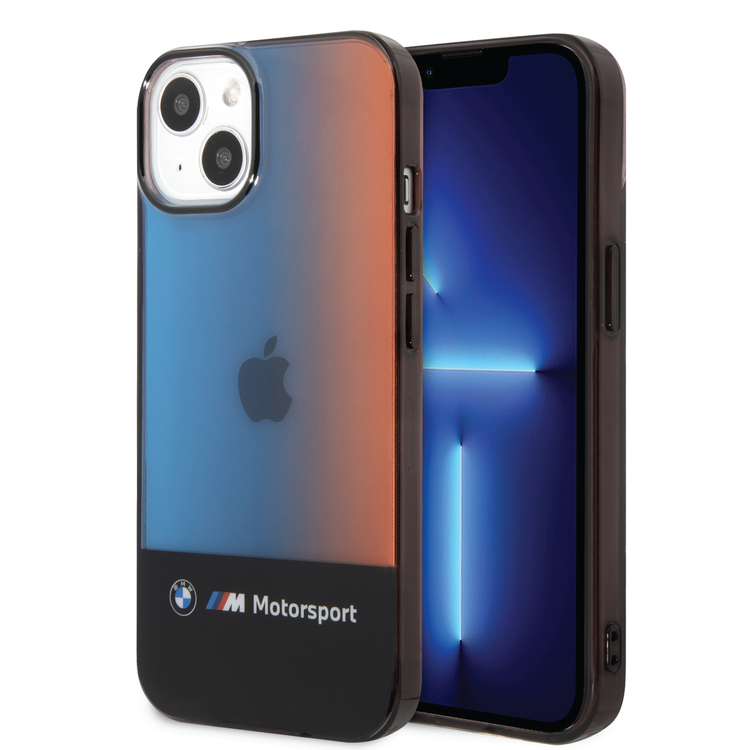 BMW Motorsport Collection PC/TPU IML Case with Printed Middle Tricolor Fading Stripe iPhone 14 Compatibility - Black