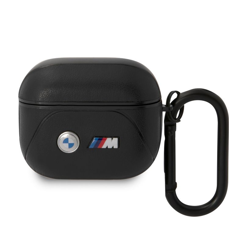 CG MOBILE BMW Motorsport Collection PU Leather Case With Curved Line Printed Logos Protective Cover / Accurate Cutouts / Premium Leather Compatible With Airpods 3 - Black