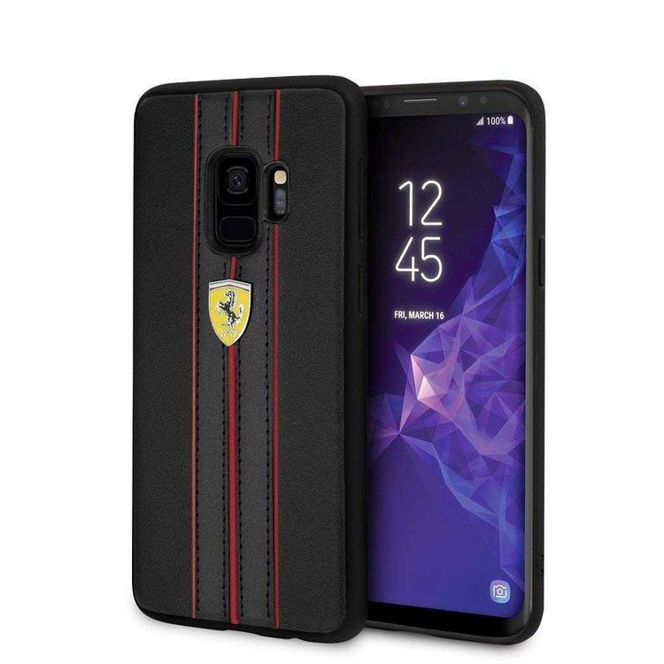 CG MOBILE Ferrari On Track PU Leather Hard Phone Case Compatible for Samsung Galaxy S9 | Protective Mobile Case Officially Licensed - Black