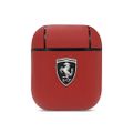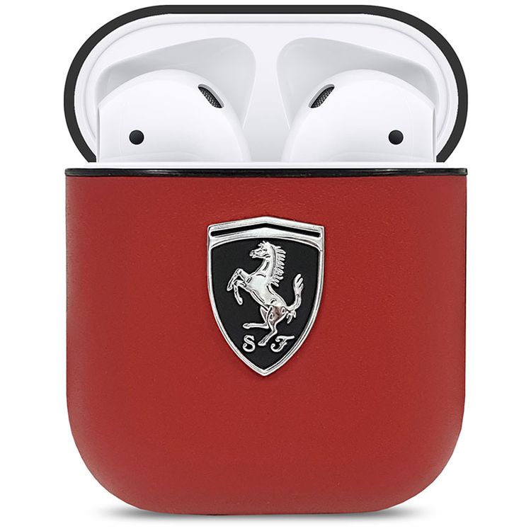 CG Mobile Ferrari PC Leather Black Shield Metal Logo متوافق مع AirPods 1/2 - أحمر