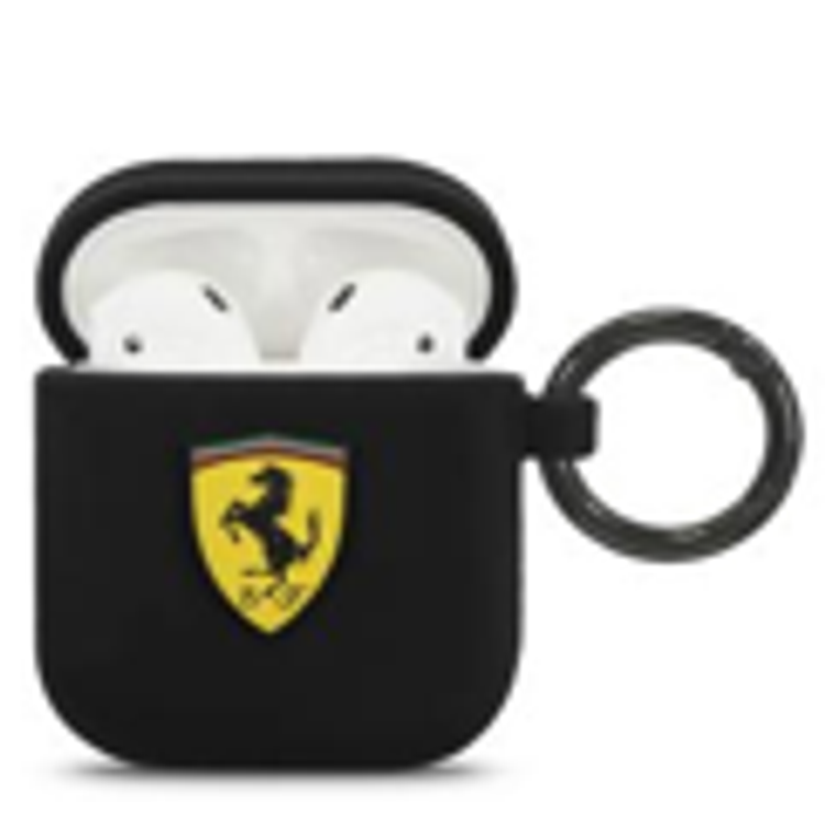 سي جي موبايل فيراري سكوديريا جراب سيليكون بحلقة متوافق مع ايربودز 1/2 ، مقاوم للخدش ، ممتص للصدمات ، حماية من السقوط ، وغطاء سيليكون واقٍ من الغبار مرخص رسميًا