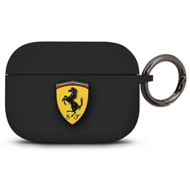 سي جي موبايل فيراري سكوديريا جراب سيليكون بحلقة متوافق مع ايربودز برو ، مقاوم للخدش ، ممتص للصدمات ، حماية من السقوط ، وغطاء واقٍ ضد الغبار مرخص رسميًا - أسود