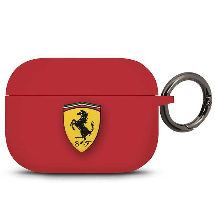 سي جي موبايل فيراري سكوديريا جراب سيليكون بحلقة متوافق مع ايربودز برو ، مقاوم للخدش ، ممتص للصدمات ، حماية من السقوط ، وغطاء واقٍ ضد الغبار مرخص رسميًا - احمر