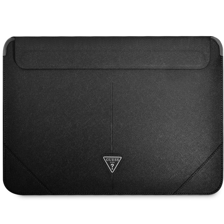 سي جي موبايل جيس GUCS16PSATLK جراب كمبيوتر Saffiano مع شعار مثلث معدني 16 بوصة حقيبة حماية لماك بوك / كمبيوتر محمول حتى 16 بوصة - أسود