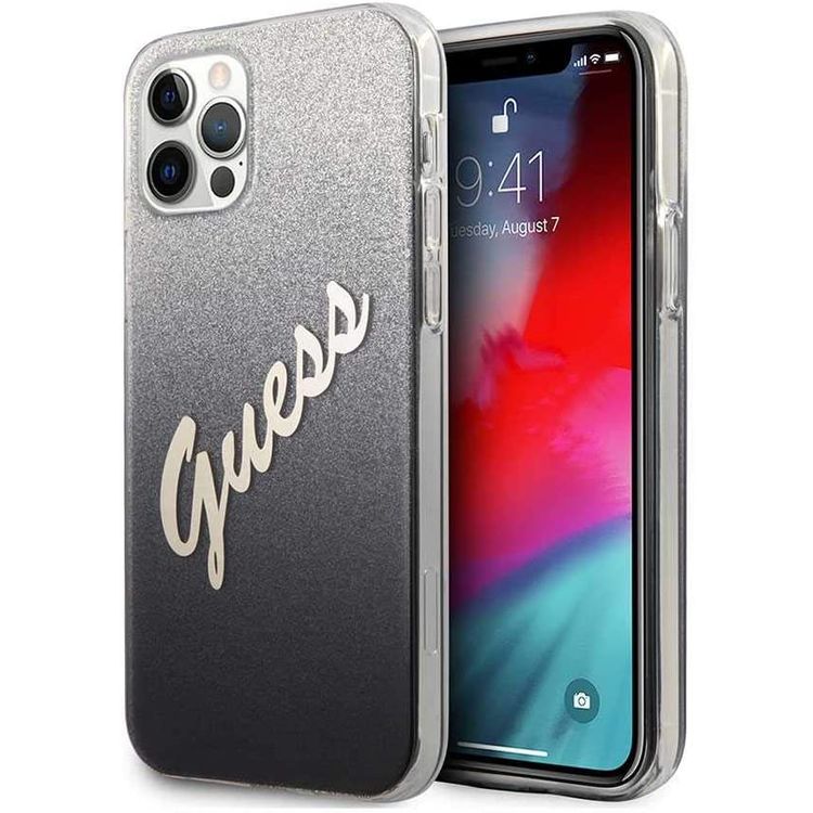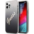 CG MOBILE Guess HC PC/TPU Script Glitter Back Shield Hard Phone Case Compatible for Apple iPhone 12 / 12 Pro (6.1") Shock-Absorption Mobile Case Officially Licensed - Gradient Black
