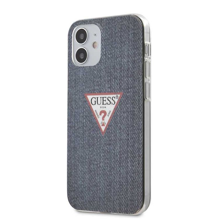 سي جي موبايل غيس PC/TPU جراب هاتف بطباعة الدنيم متوافق مع ايفون 12 ميني (5.4 بوصة) جراب هاتف مناسب مع شواحن لاسلكية مرخصة رسميًا - أزرق داكن
