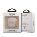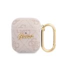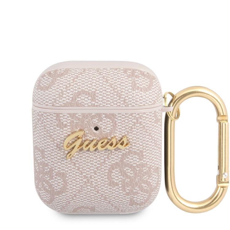 جراب سي جي موبايل من غيس من مادة بولي اليوريثان 4جي مع شعار سكريبت معدني لأجهزة ايربودز 1/2 مقاوم للخدش وغطاء ممتص للصدمات وحماية من السقوط مرخص رسميًا - وردي