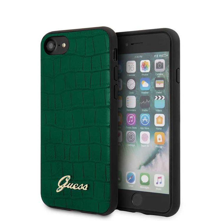 جراب هاتف CG Mobile Guess PU Croco مطبوع بشعار معدني متوافق مع iPhone 7/8 / SE (2) مقاوم للصدمات والخدش مرخص رسميًا - أخضر داكن
