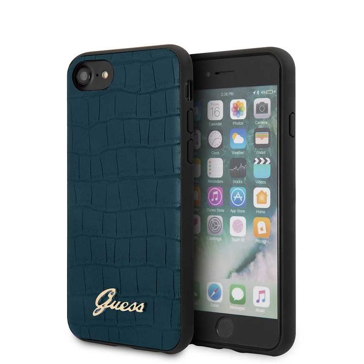 جراب هاتف CG Mobile Guess PU Croco مطبوع بشعار معدني متوافق مع iPhone 7/8 / SE (2) مقاوم للصدمات والخدش مرخص رسميًا - أزرق