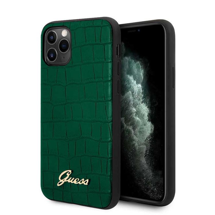 جراب هاتف CG Mobile Guess PU Croco مطبوع عليه شعار معدني متوافق مع iPhone 11 Pro (5.8 بوصات) مقاوم للصدمات والخدش مرخص رسميًا - أخضر