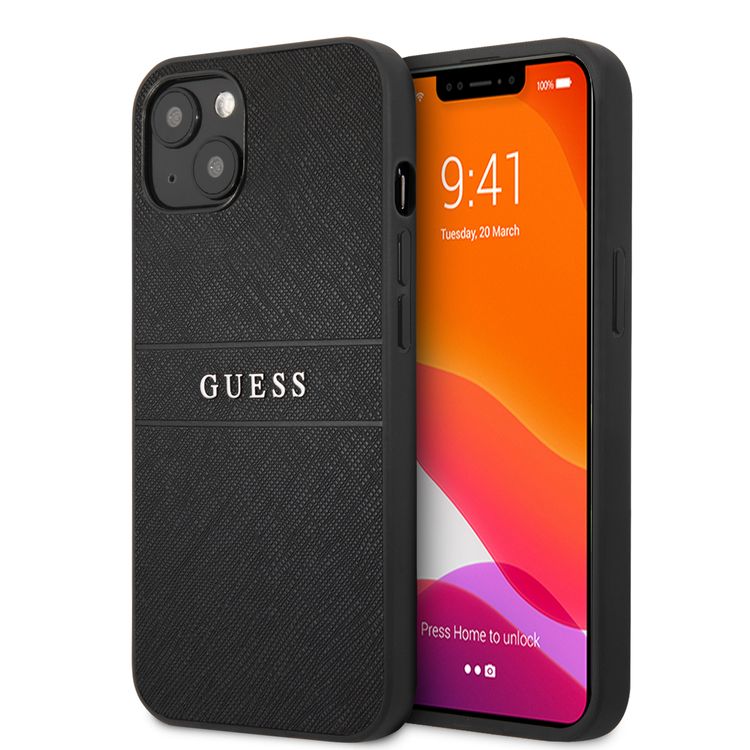 CG MOBILE Guess PU Leather Case Saffiano with Metal Logo Hot Stamp Stripes Compatible for iPhone 13 Pro Max (6.7") Anti-Scratch, Easy Access to All Ports, Shock Absorption & Drop Protective Back Cover Suitable with Wireless Charging Officially Licensed