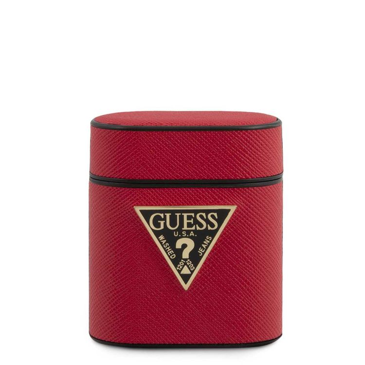 سي جي موبايل غيس جراب من مادة بولي اليوريثان من سافيانو دائري الشكل مع شعار معدني متوافق مع ايربودز 1/2 ، مقاوم للخدش والسقوط ، غطاء واقٍ يمتص الغبار ويمتص مرخص رسميًا - احمر
