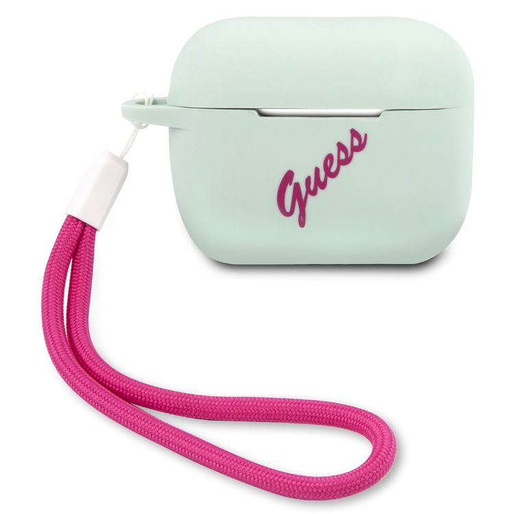 جراب سي جي موبايل من غيس من السيليكون العتيق بشعار فوشيا مع حبل متوافق مع ايربودز برو ، مقاوم للخدش والسقوط ، غطاء سيليكون واقٍ مقاوم للأتربة والامتصاص ، ملمس ناعم ، سهل التركيب