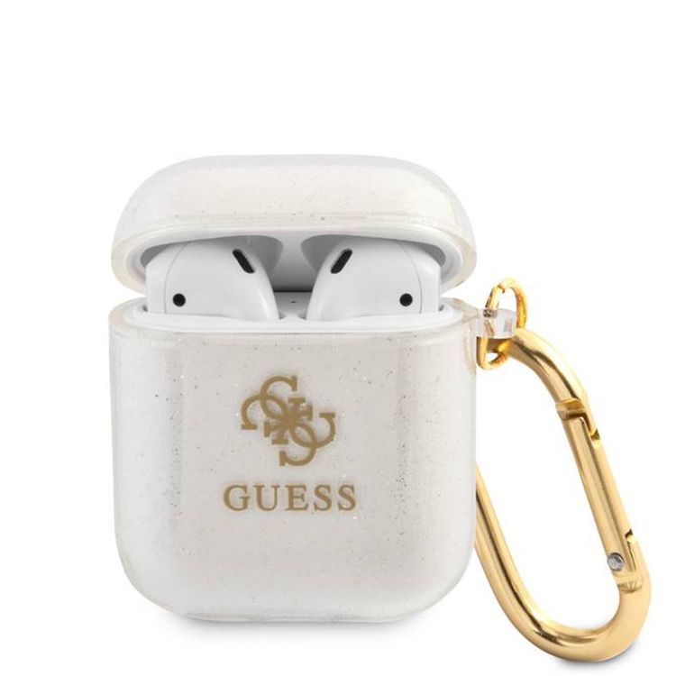 جراب Guess Glitter لسماعات AirPods الجيل 1 و 2 مع فتحات دقيقة، سهل التركيب، حماية من السقوط، مصنوع من مادة TPU، خفيف الوزن - شفاف