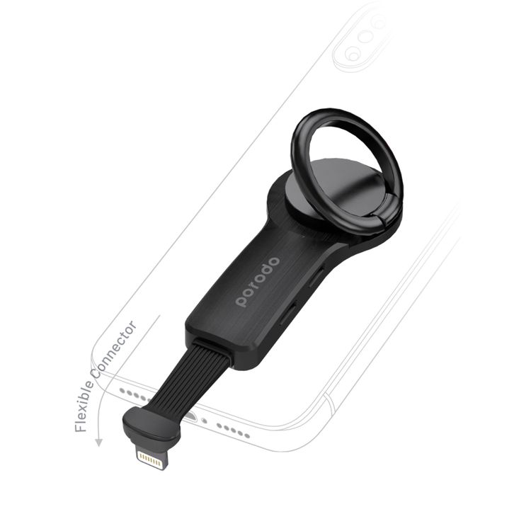 محول بورودو مزدوج بمنفذ لايتنينج مع مسكة دعم للهاتف، تيار شحن 2 أمبير، دعم للميكروفون والصوت، متوافق مع أجهزة اللايتنينج، مصنوع من هيكل ABS والمعدن، تصميم فائق النحافة - أسود