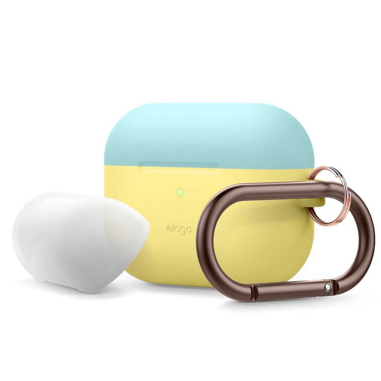 جراب Elago Duo معلق لسماعات Apple Airpods Pro - أزرق مرجاني علوي / أزرق ليلي ، أصفر كريمي سفلي