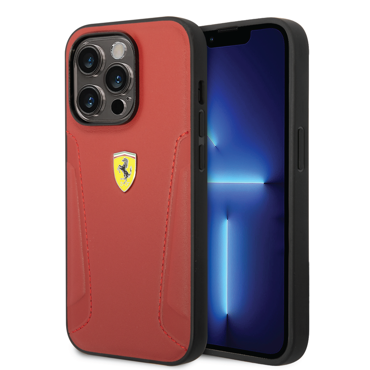 حقيبة فيراري الجلدية مع جوانب مختومة وشعار الدرع الأصفر - آيفون 14 برو ماكس - أحمر
