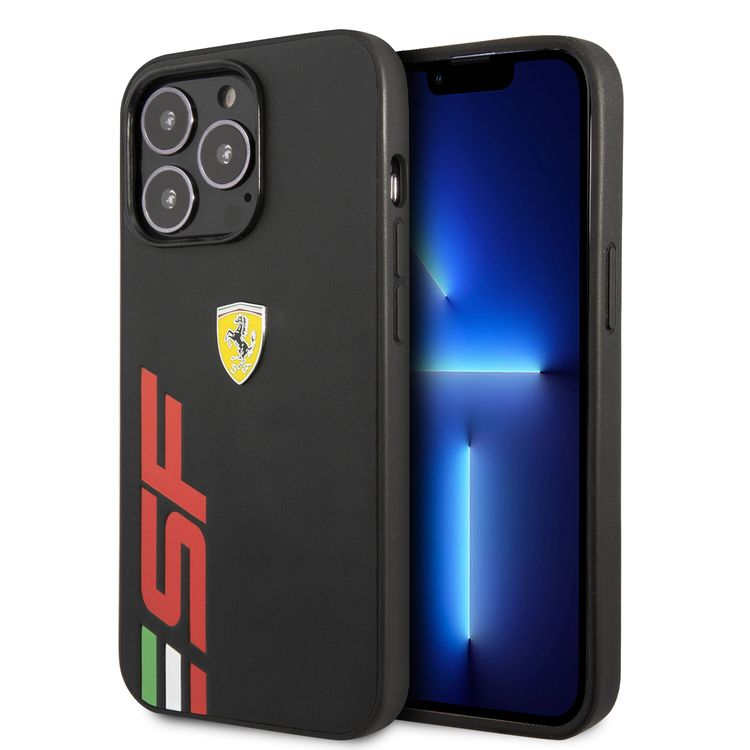 فيراري جراب صلب مطبوع عليه شعار SF كبير من الجلد ، حماية من السقوط ، متوافق مع ايفون 13 برو ماكس - أسود