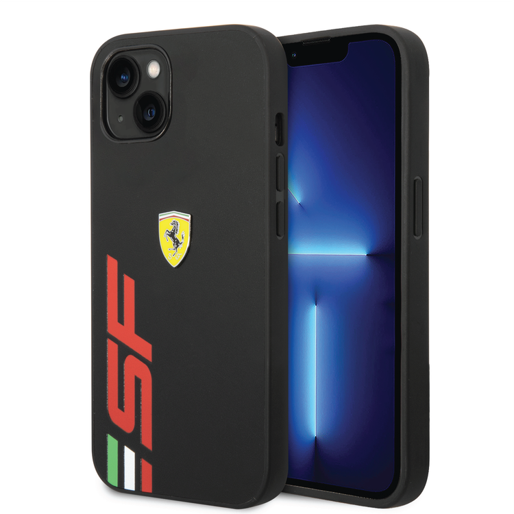 Ferrari PU Leather Case with Printed Big SF Logo iPhone 14 Compatibility - Black