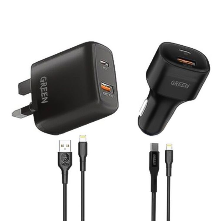 شاحن سيارة كومبو 4 في 1 من جرين ليون وشاحن حائط مع شحن سريع متعدد المنافذ - أسود