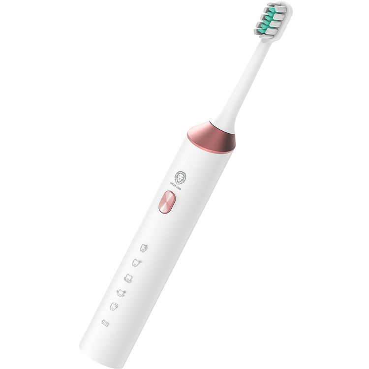 فرشاة أسنان كهربائية Green Lion مع 4 رؤوس فرشاة، مناسبة للأسنان الحساسة والمصبوغة، مؤقت ذكي لمدة دقيقتين، 5 أوضاع للفرشاة، تصميم نحيف - أبيض
