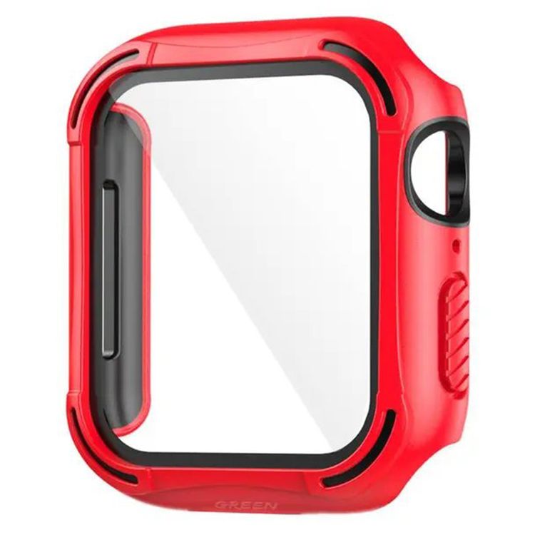 جراب Green Lion Guard Pro Defense Edge مع واقي زجاجي لساعة Apple Watch مقاس 44 مم، يدعم الشحن اللاسلكي، سهل التركيب وخالٍ من الفقاعات، حماية كاملة للجسم بزاوية 360 درجة، ممتص للصدمات ومضاد للكسر، مصنوع من مادة PC وTPU الممتازة، نحيف وخفيف الوزن - أحمر