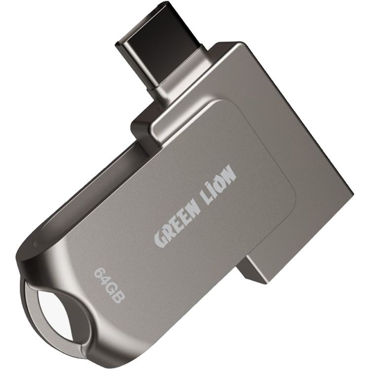 جرين ليون 2 في 1 OTG مع USB-C إلى USB-A، نقل بيانات عالي السرعة، توافق واسع، تصميم دوار بزاوية 360°، توصيل وتشغيل - فضي