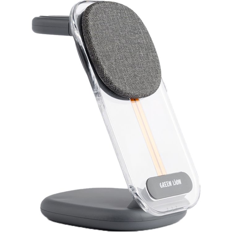 شاحن لاسلكي 3 في 1 من جرين ليون بقدرة إخراج قصوى 15 واط، مع حمايات متعددة، مدخل Type-C، إخراج سماعات 5 واط، مغناطيس قوي، إخراج للساعة 3 واط - رمادي