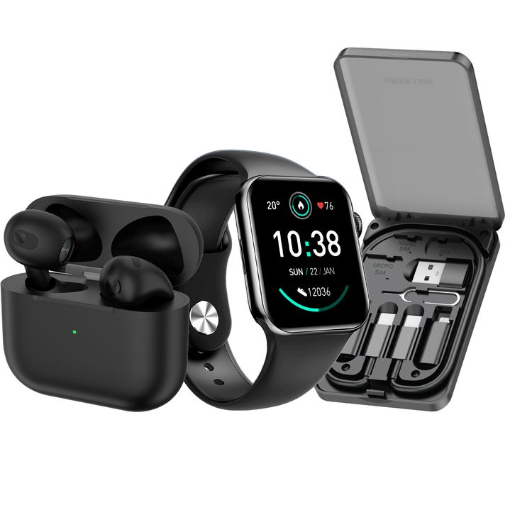 Green Lion 3 in 1 Ultimate Combo (ساعة ذكية وسماعات أذن وصندوق متعدد الوظائف) - أسود