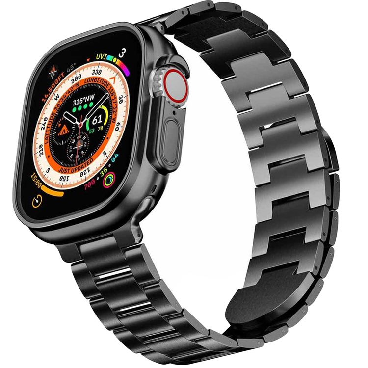 حزام ساعة Green Lion Acero Correa لساعة Apple Watch مقاسات 42/44/45/49 مم، مصنوع من الفولاذ المقاوم للصدأ، سهل التركيب، مريح ومتين، تصميم أنيق - أسود