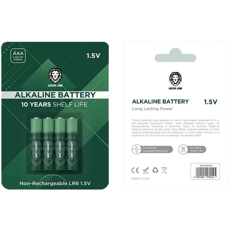 بطارية AAA قلوية الأسد الأخضرife, Accidental Leakage Protection, Long Lasting Power, Voltage of 1.5 - Green