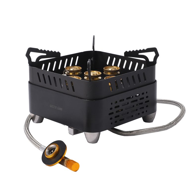 موقد تخييم Green Lion Campfire بطاقة حرارية 3500 وات، موقد نحاسي فعال، متوافق مع غاز البوتان، مقاوم للرياح، إشعال بيزوكهربائي، توصيل سهل للغاز، تحكم في الشعلة قابل للتعديل، إنتاج حرارة سريع، توزيع حرارة متساوٍ، موقد نحاسي بخمسة رؤوس، حقيبة حمل واقية - أسود.
