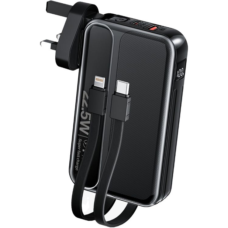 شاحن باور بانك غرين ليون تشارج ميت بقدرة 10000 مللي أمبير PD 22.5W، مدخل طاقة AC، كابلات مدمجة، شاشة رقمية، قابس الولايات المتحدة، قابس الاتحاد الأوروبي، قابس المملكة المتحدة - أسود